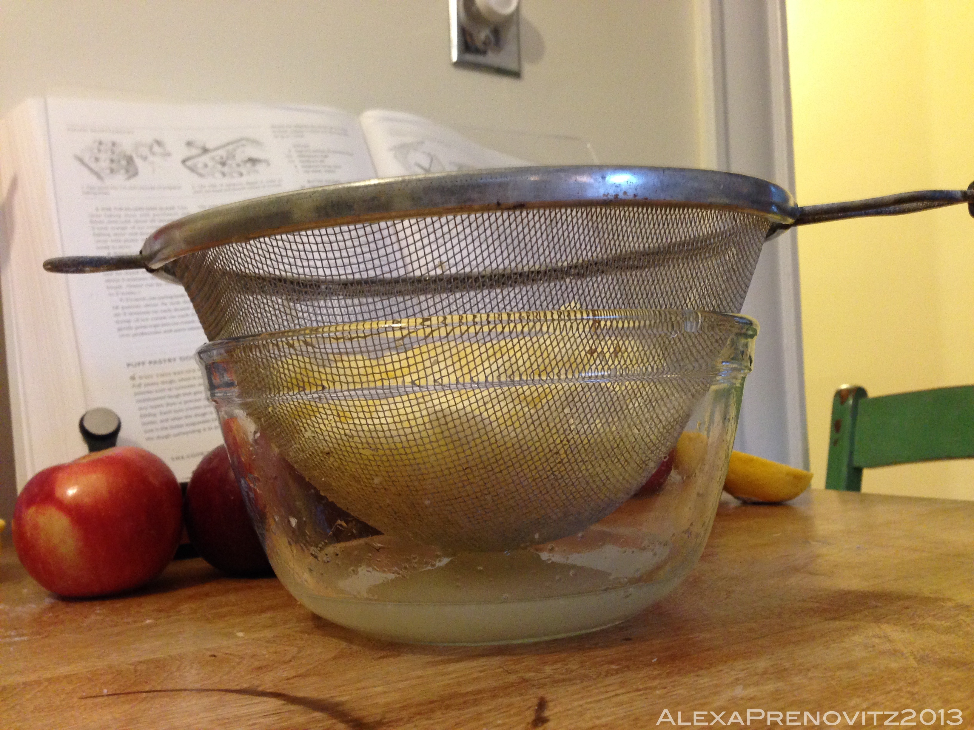 - Pulse apples, ½ cup sugar, lemon juice and salt together in food processor until the largest pieces of apple are no larger than ½ inch. Let mixture sit for 5 minutes, then transfer to fine-mesh strainer set over bowl and let apples drain, reserving juice, until needed.