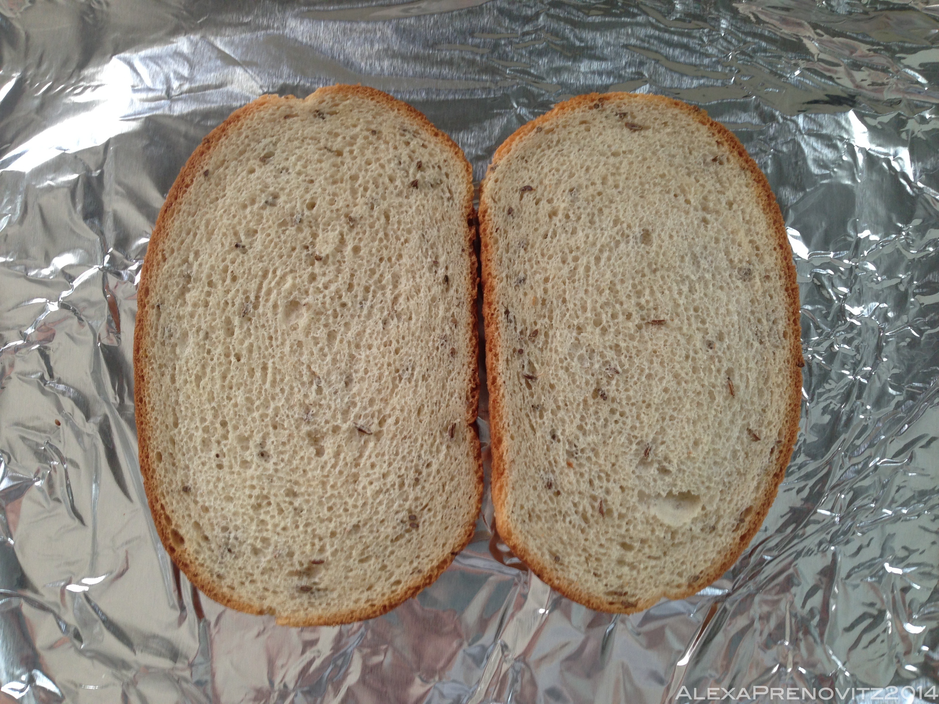 Don’t put the piece of bread without meat in the oven. I just forgot to take it out of the picture.