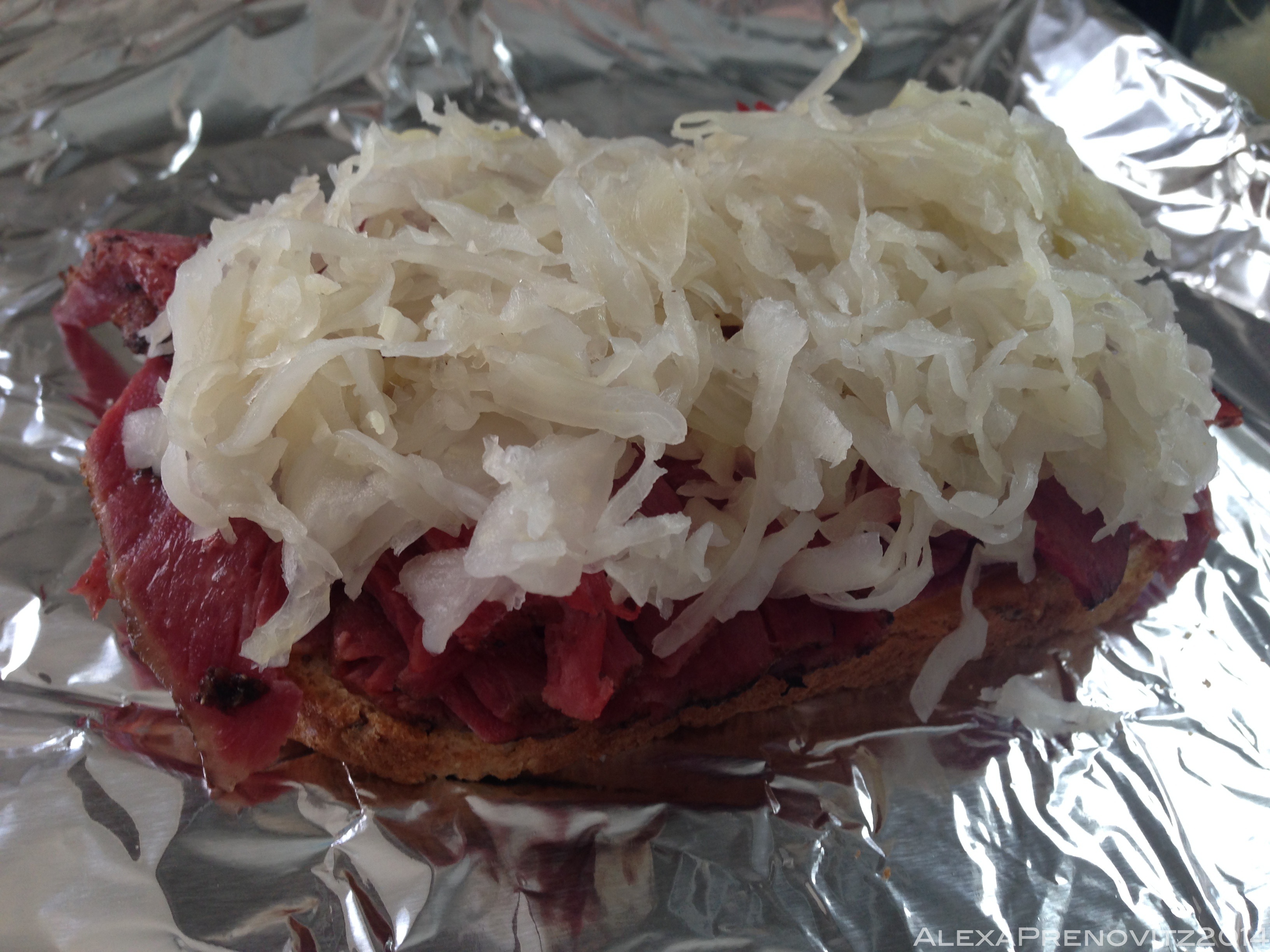 Today on my day off I went to Costco (shocker) while hungry (rookie mistake) and ended up with a shrink -wrapped package of kosher pastrami the size of a canoe paddle. Since Costco is apparently a happening lunch spot and the line for hotdogs was wicked long I decided that a Reuben sandwich would be the next best thing. Yes, in my world a homemade Reuben is second to a foot-long hotdog.