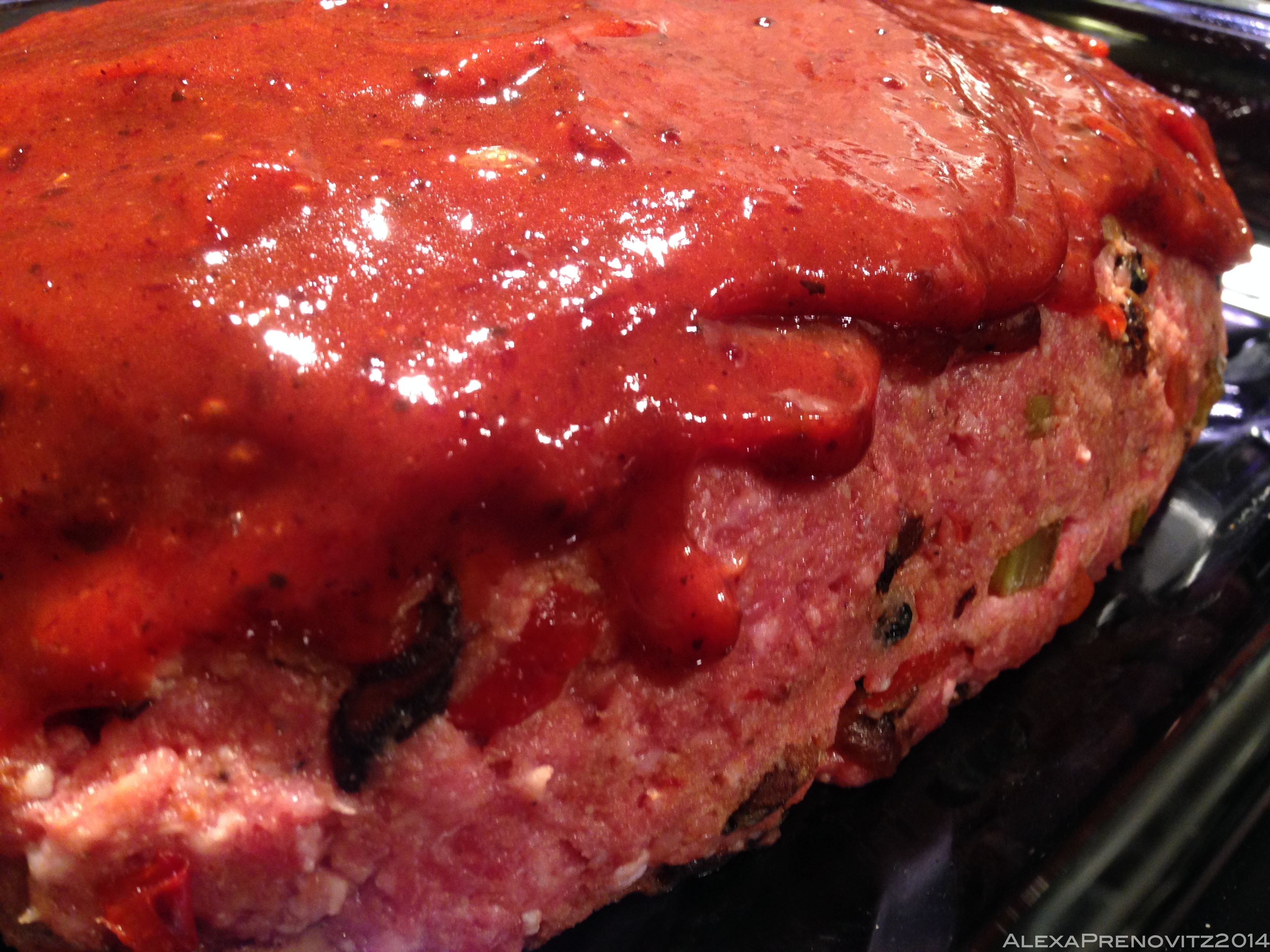 Whisk together the ketchup, hot sauce, and bbq sauce. Pour over the top of the loaf and use a spatula to evenly distribute the topping.