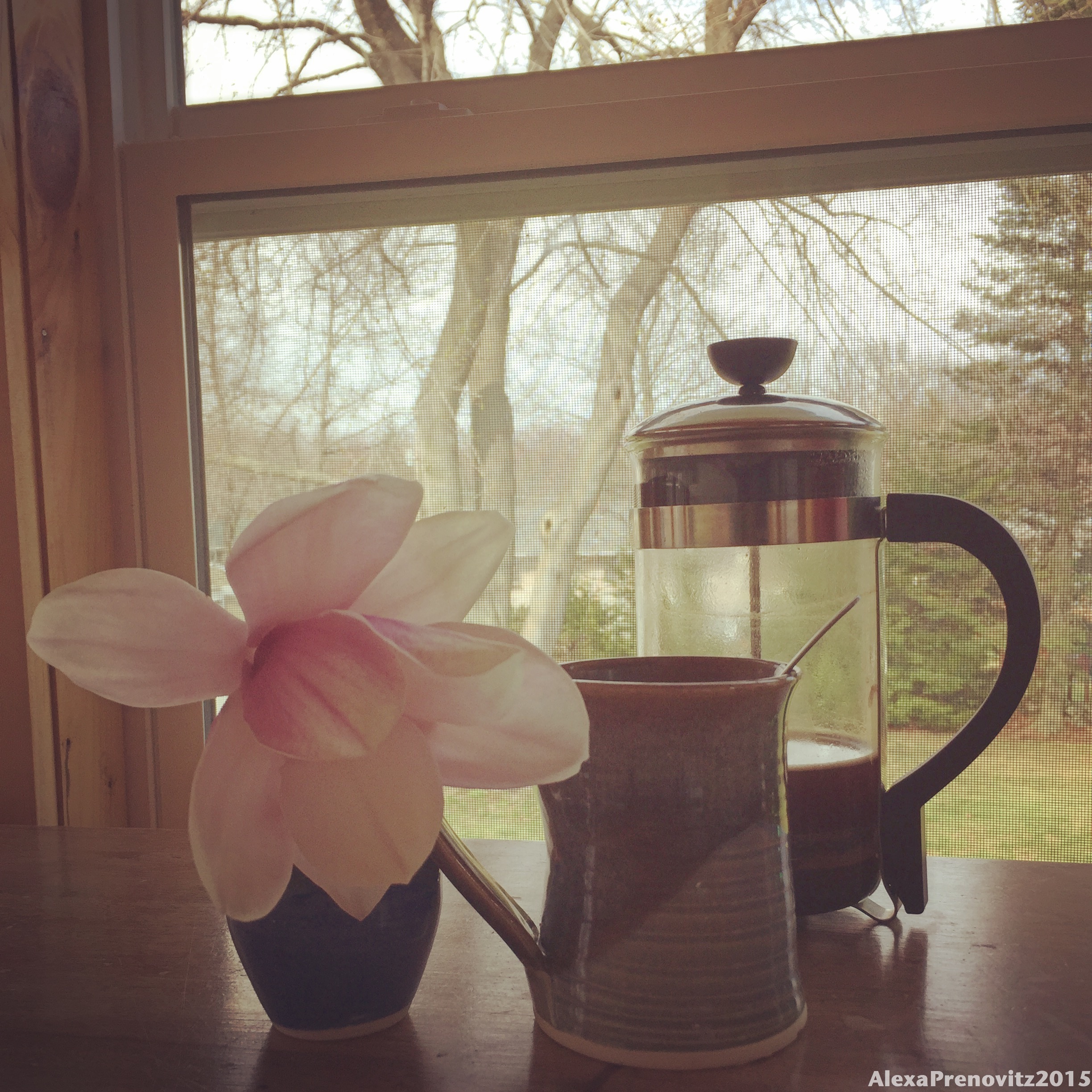 Perhaps the most exciting part of having the house come together (other than starting the nursery and having the guest room/library come together) is I have a beautiful little sun porch to eat breakfast on and hang out in while writing or reading, or waiting for the chimney repair folks who are now 3 months and nine minutes late. Not that I’m counting. Thanks for all the snow, New England, I could have had roaring cozy fires all winter had it not been for you cramping my style and preventing people from getting up on the roof. Rude.